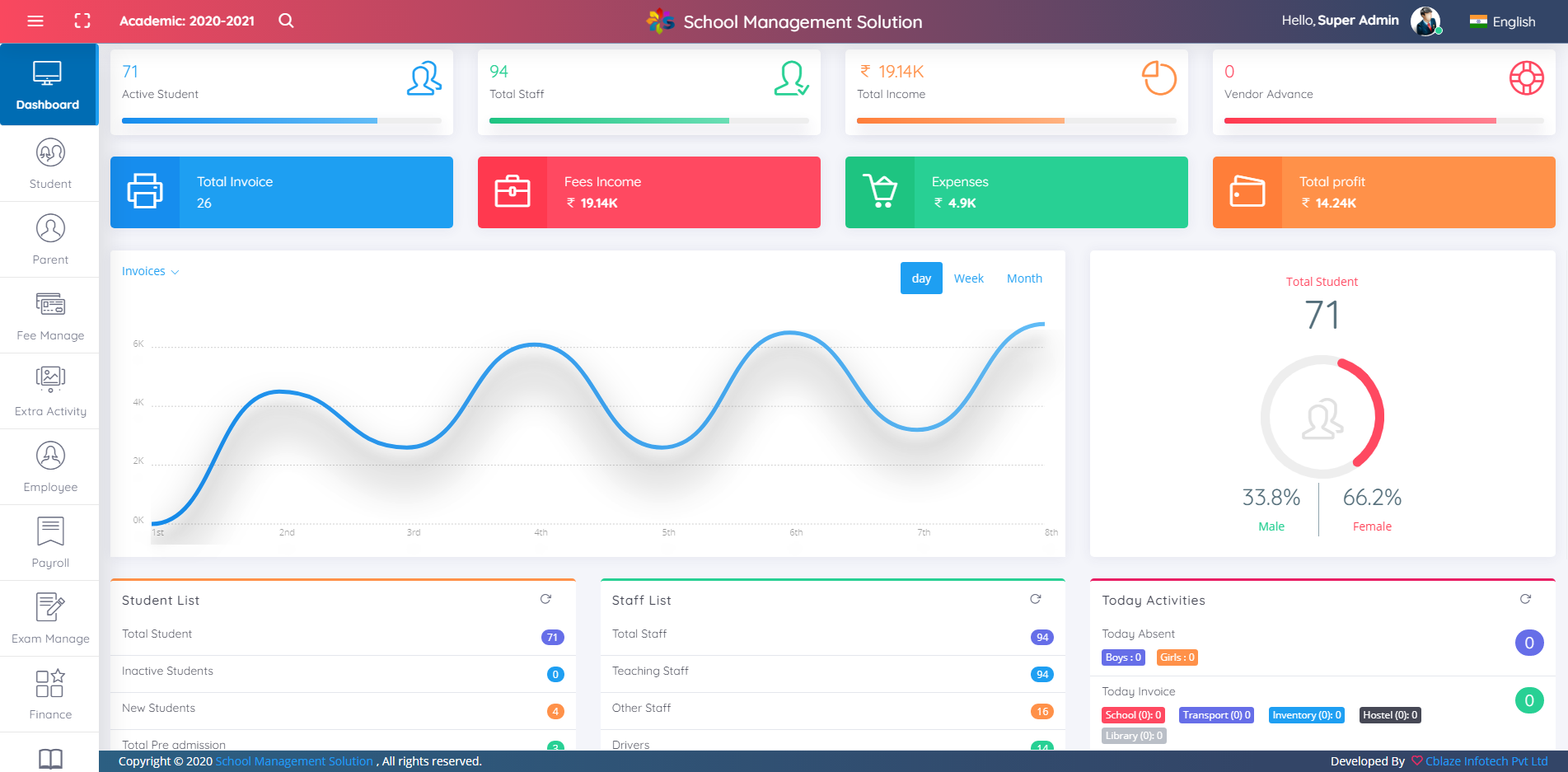 SMS Management Web Article Infotechs' School Management Solutions (SMS) functions as a personal assistant to school management and streamlines every administration activity at schools. It Offers a convenient way to interact with your school community or other stake holders of schools. It is an efficient tool which can help you in managing information in the best way.
